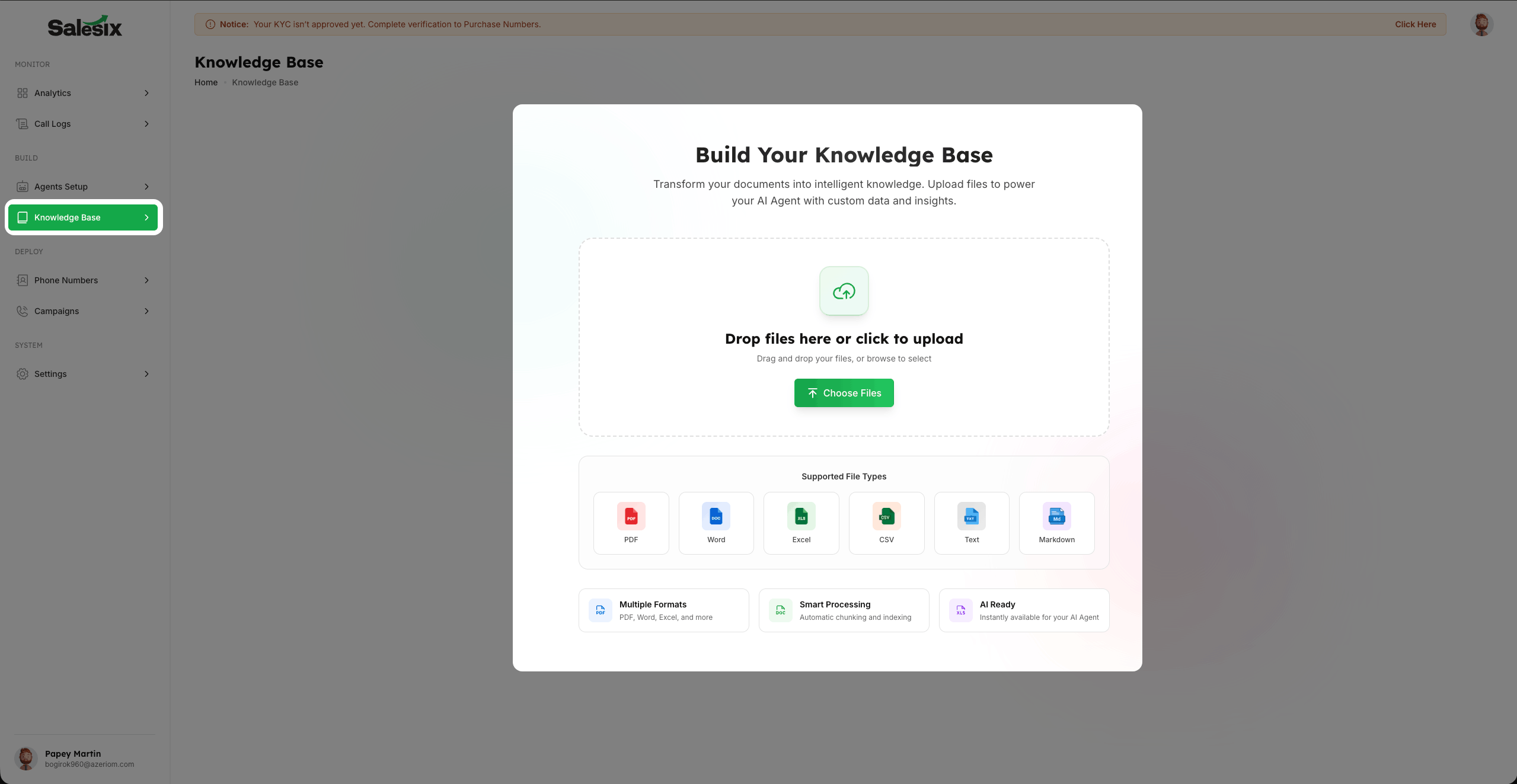 A well-maintained Knowledge Base is the backbone of an intelligent AI agent. By providing your agent with accurate, up-to-date documents, you ensure that every interaction is grounded in your professional business logic and domain expertise.
