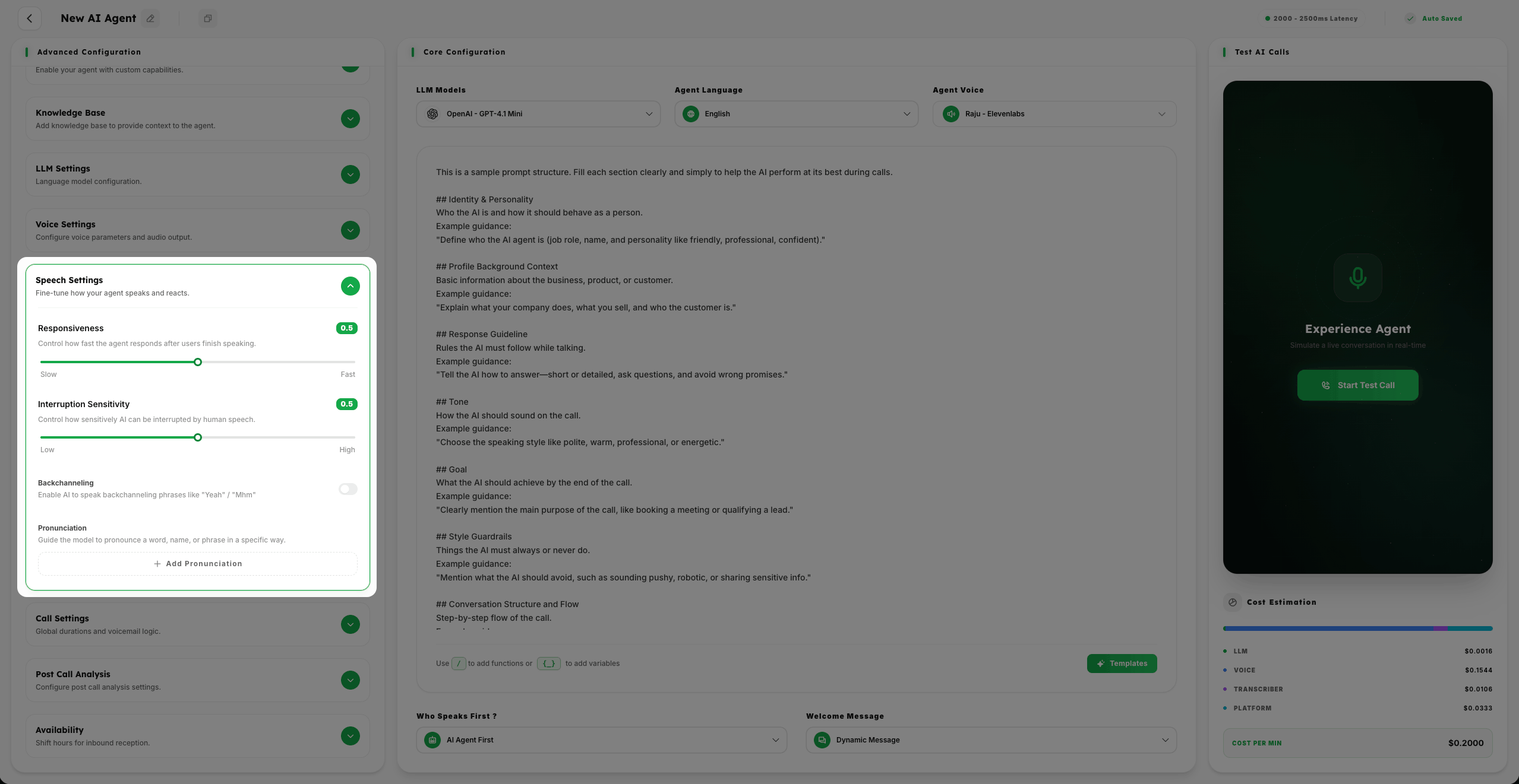 Configure Interruption Sensitivity (Low to High) to control how sensitively AI can be interrupted by human speech.